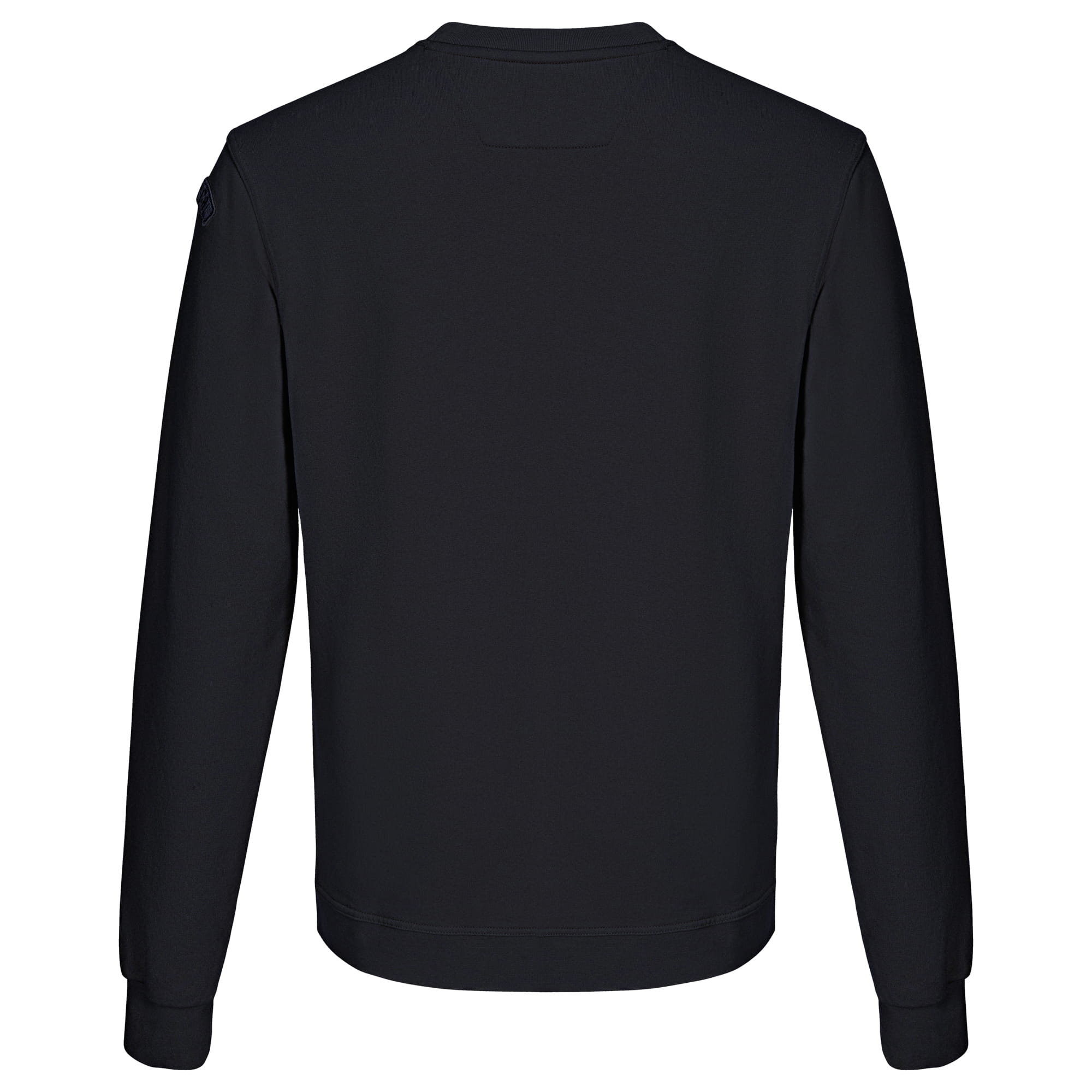 De pasvorm is recht en comfortabel met een regular fit: ruim genoeg voor bewegingsvrijheid, zonder zijn strakke uitstraling te verliezen. De ronde hals is licht aansluitend en hoogwaardig afgewerkt met zachte boordstof met stretch, net als de manchetten en zoom.