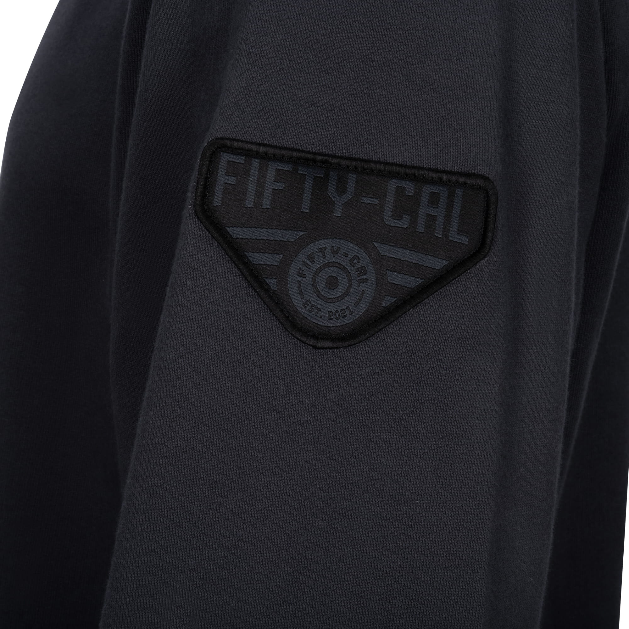 De subtiele borstprint en de herkenbare Fifty-Cal patch op de linkerarm geven de sweater een verfijnde, maar onmiskenbare uitstraling.